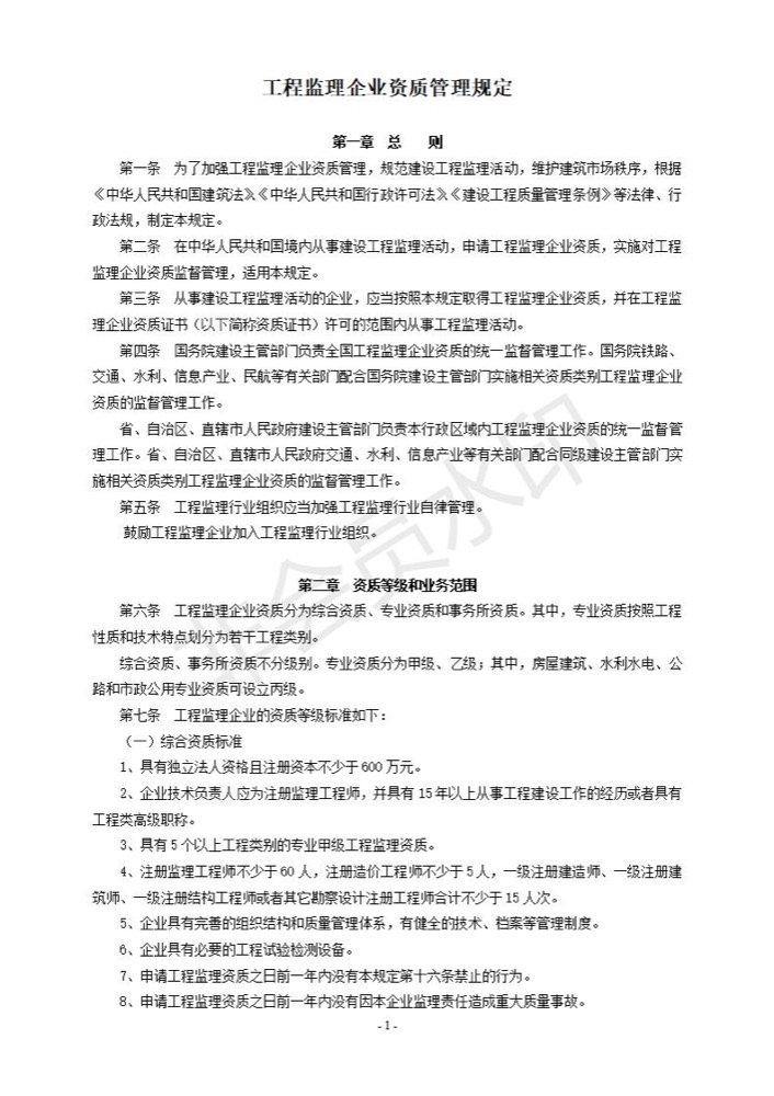 工程監(jiān)理企業(yè)資質管理規(guī)定